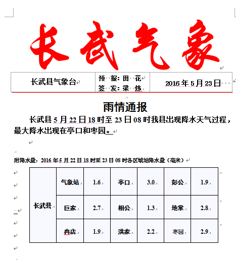 气象服务月报表